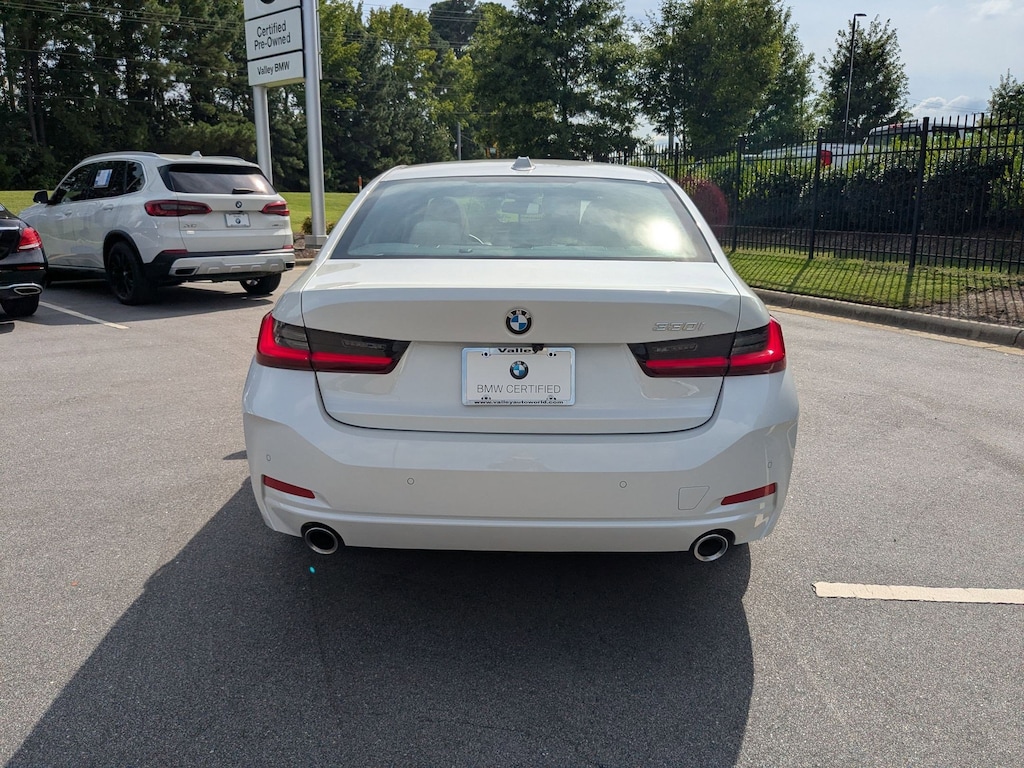 Clean CARFAX. Certified. Mineral White Metallic 2024 BMW 3 Series 330i RWD 8-Speed Automatic Sport 2.0L 4-Cylinder DOHC 16V Turbocharged BMW Certified Pre-Owned Certified, 10 Speakers, 4-Wheel Disc Brakes, ABS brakes, Air Conditioning, Alloy wheels, AM/FM radio: SiriusXM, Apple CarPlay & Android Auto Compatibility, Apple CarPlay Compatibility, Auto High-beam Headlights, Auto-dimming door mirrors, Auto-dimming Rear-View mirror, Automatic temperature control, BMW Assist eCall, BMW TeleServices, Brake assist, Bumpers: body-color, Compass, Connected Package Pro, ConnectedDrive Services, Delay-off headlights, Driver door bin, Driver vanity mirror, Dual front impact airbags, Dual front side impact airbags, Electronic Stability Control, Emergency communication system: BMW Assist eCall, Exterior Parking Camera Rear, Four wheel independent suspension, Front anti-roll bar, Front Bucket Seats, Front Center Armrest, Front dual zone A/C, Front reading lights, Fully automatic headlights, Garage door transmitter, Genuine wood console insert, Genuine wood dashboard insert, Heated door mirrors, Hi-Fi Sound System, Illuminated entry, Knee airbag, Leather Shift Knob, Leather steering wheel, Low tire pressure warning, Memory seat, Navigation, Navigation System, Occupant sensing airbag, Outside temperature display, Overhead airbag, Panic alarm, Passenger door bin, Passenger vanity mirror, Perforated Sensatec Upholstery, Power door mirrors, Power driver seat, Power Front Seats, Power moonroof, Power passenger seat, Power steering, Power windows, Radio data system, Radio: AM/FM Audio System, Rain sensing wipers, Rear air conditioning, Rear anti-roll bar, Rear reading lights, Rear seat center armrest, Rear window defroster, Remote keyless entry, Security system, SiriusXM w/360L & 1 Year Platinum Plan Subscription, Speed control, Speed-sensing steering, Speed-Sensitive Wipers, Split folding rear seat, Sport Seats, Sport steering wheel, Steering wheel mounted audio controls, Tachometer, Telescoping steering wheel, Tilt steering wheel, Traction control, Trip computer, Turn signal indicator mirrors, Variably intermittent wipers, Wheels: 18" x 7.5" Lt/Aly Double-Spoke (Style 796), Widescreen Display.