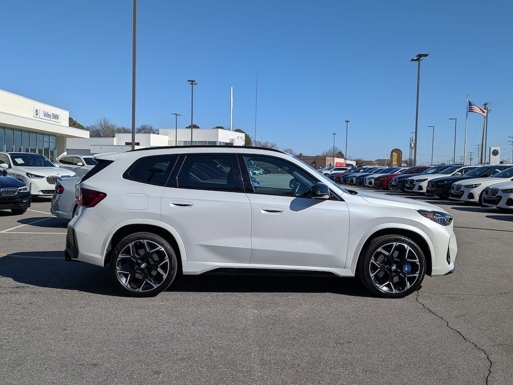 CARFAX One-Owner. Clean CARFAX. Certified. Mineral White Metallic 2024 BMW X1 M35i AWD 7-Speed Automatic 2.0L I4 DOHC BMW Certified Pre-Owned Certified, 12 Speakers, 3.20 Axle Ratio, 4-Wheel Disc Brakes, ABS brakes, ACC Stop & Go + Active Driving Assistant, Adaptive suspension, Air Conditioning, Alloy wheels, AM/FM Radio, AM/FM radio: SiriusXM with 360L, Anti Theft Recorder, Apple CarPlay & Android Auto Compatibility, Apple CarPlay Compatibility, Auto High-beam Headlights, Auto-dimming door mirrors, Auto-dimming Rear-View mirror, Automatic temperature control, BMW Assist eCall, BMW TeleServices, Brake assist, Bumpers: body-color, Compass, ConnectedDrive Services, Delay-off headlights, Driver door bin, Driver vanity mirror, Driving Assistance Plus Package, Dual front impact airbags, Dual front side impact airbags, Electronic Stability Control, Emergency communication system: BMW Assist eCall, Extended Shadowline Trim, Exterior Parking Camera Rear, Four wheel independent suspension, Front anti-roll bar, Front Bucket Seats, Front Center Armrest w/Storage, Front dual zone A/C, Front reading lights, harman/kardon® Logic 7® Digital Surround, harman/kardon® Speakers, Head-Up Display, Heated door mirrors, Heated Front Seats, Heated Front Seats & Steering Wheel, Heated Steering Wheel, Illuminated entry, Increased Top Speed, Interior Camera, Knee airbag, Live Cockpit Pro, Low tire pressure warning, M Alcantara/Veganza Upholstery, M Shadowline Lights, Memory seat, Navigation, Navigation System, Occupant sensing airbag, Outside temperature display, Overhead airbag, Overhead console, Panic alarm, Panoramic Moonroof, Parking Assistant Plus, Passenger door bin, Passenger vanity mirror, Power door mirrors, Power driver seat, Power Front Seats, Power Liftgate, Power passenger seat, Power steering, Power windows, Premium Content 1, Premium Package, Radio data system, Rain sensing wipers, Rear anti-roll bar, Rear reading lights, Rear seat center armrest, Rear window defroster, Rear window wiper, Remote Engine Start, Remote keyless entry, Roof rack: xxxxxx, Security system, Shadowline Package, SiriusXM w/360L & 1 Yr Platinum Plan Subscription, Speed control, Speed-sensing steering, Speed-Sensitive Wipers, Split folding rear seat, Spoiler, Sport Seats, Steering wheel mounted audio controls, Surround View w/3D View, Tachometer, Telescoping steering wheel, Tilt steering wheel, Traction control, Trip computer, Turn signal indicator mirrors, Universal Garage-Door Opener, Variably intermittent wipers, Wheels: 19" x 8.0" M Double-Spoke Bi-Color, Wheels: 20" x 8.0" M Y Spk Bi-Color, Widescreen Display, Wireless Device Charging.