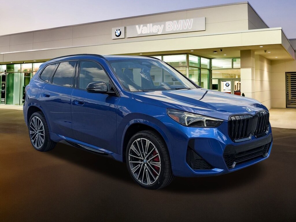 Portimao Blue Metallic 2025 BMW X1 xDrive28i AWD 7-Speed Automatic 2.0L I4 16V TwinPower Turbo 4-Wheel Disc Brakes, 7 Speakers, ABS brakes, ACC Stop & Go + Active Driving Assistant, Adaptive M Suspension, Air Conditioning, Alloy wheels, Aluminum Hexacube Trim II w/Ambient Light, AM/FM Radio, AM/FM radio: SiriusXM with 360L, Anti Theft Recorder, Apple CarPlay & Android Auto Compatibility, Apple CarPlay Compatibility, Auto High-beam Headlights, Auto-Dimming Interior & Exterior Mirrors, Auto-Dimming Rear-View Mirror, Automatic temperature control, Black High Gloss Trim w/Ambient Light, Black Mirror Caps, BMW Assist eCall, BMW Digital Key Plus w/UWB, BMW TeleServices, Brake assist, Bumpers: body-color, Comfort Access Keyless Entry, Compass, Delay-off headlights, Driver door bin, Driver vanity mirror, Driving Assistance Plus Package, Dual front impact airbags, Dual front side impact airbags, Electronic Stability Control, Emergency communication system: BMW Assist eCall, Extended Shadowline Trim, Exterior Parking Camera Rear, Four wheel independent suspension, Front anti-roll bar, Front Bucket Seats, Front Center Armrest w/Storage, Front dual zone A/C, Front reading lights, harman/kardon® Logic 7® Digital Surround, Head-Up Display, Heated door mirrors, Heated Front Seats, Heated front seats, Heated Steering Wheel, Illuminated entry, Knee airbag, Leather steering wheel, Live Cockpit Pro, Low tire pressure warning, M Shadowline Lights, M Sport Brakes w/Red Calipers, M Sport Content, M Sport Exterior Elements, M Sport Interior Elements, M Sport Package, M Sport Package (337), M Sport Package Pro, M Sport Pro Contents, M Sport Professional Package, M Steering Wheel, Memory seat, Navigation, Navigation System, Occupant sensing airbag, Outside temperature display, Overhead airbag, Overhead console, Panic alarm, Panoramic Moonroof, Parking Assistant Plus, Passenger door bin, Passenger vanity mirror, Perforated Veganza Upholstery, Personal eSIM 5G, Power door mirrors, Power driver seat, Power Front Seats, Power Liftgate, Power passenger seat, Power steering, Power windows, Premium Content 1, Radio data system, Rain sensing wipers, Rear anti-roll bar, Rear reading lights, Rear seat center armrest, Rear Spoiler, Rear window defroster, Rear window wiper, Remote Engine Start, Remote keyless entry, Roof Rails in High-Gloss Shadowline, Security system, Shadowline Exterior Trim, SiriusXM w/360L & 1 Yr Platinum Plan Subscription, Speed control, Speed-sensing steering, Speed-Sensitive Wipers, Split folding rear seat, Spoiler, Sport Seats, Steering wheel mounted audio controls, Surround View w/3D View, Tachometer, Technology Package, Telescoping steering wheel, Tilt steering wheel, Traction control, Trip computer, Turn signal indicator mirrors, Universal Garage-Door Opener, Variably intermittent wipers, Wheels: 18" x 7.5" M V-Spoke Bi-Color, Wheels: 18" x 7.5" V-Spoke Bi-Color, Wheels: 20" x 8.0" Individual Multi-Spoke, Widescreen Display, Wireless Device Charging, Without Lines Designation Outside.