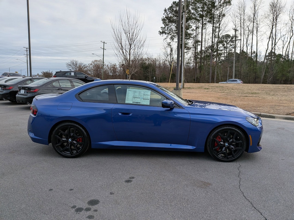 Portimao Blue Metallic 2026 BMW 2 Series 230i xDrive AWD 8-Speed Automatic Sport 2.0L I4 16V TwinPower Turbo 10 Speakers, 4-Wheel Disc Brakes, ABS brakes, Active Park Distance Control with Side Protection, Adaptive Full LED Lights, Aerodynamic Kit, Air Conditioning, Alloy wheels, Aluminum Rhombicle Anthracite Trim, AM/FM radio: SiriusXM with 360L, Apple CarPlay and Android Auto Compatibility, Auto-dimming door mirrors, Auto-dimming Rear-View mirror, Automatic High Beams, Automatic temperature control, BMW Assist ECall, BMW TeleServices, Brake assist, Bumpers: body-color, Connected Package Pro Limited Term, ConnectedDrive Services, Delay-off headlights, Drive Recorder, Driver door bin, Driver vanity mirror, Dual front impact airbags, Dual front side impact airbags, Electronic Stability Control, Emergency communication system: BMW Assist eCall, Extended Shadowline Trim, Exterior Parking Camera Rear, Four wheel independent suspension, Front anti-roll bar, Front Bucket Seats, Front Center Armrest, Front dual zone A/C, Front reading lights, Front Sport Seats, Fully automatic headlights, Harman/Kardon Surround Sound System, Heated door mirrors, Heated Front Seats, Heated front seats, Heated Steering Wheel, Hi-Fi Sound System, Illuminated entry, Knee airbag, Leather Shift Knob, Leather steering wheel, Live Cockpit Pro with Head-Up Display, Low tire pressure warning, M Fine Brushed Aluminum Interior Trim, M Shadowline Lights, M Sport Brakes with Red Calipers, M Sport Package, M Sport Package Pro, M Sport Professional Package, M Sport Suspension, M Steering Wheel, Memory seat, Moonroof, Navigation, Navigation System, Occupant sensing airbag, Outside temperature display, Overhead airbag, Panic alarm, Parking Assistance Package, Parking Assistant Plus, Parking View with 3D View (Surround View), Passenger door bin, Passenger vanity mirror, Perforated Sensatec Upholstery, Personal ESIM 5G, Power door mirrors, Power driver seat, Power Front Seats, Power passenger seat, Power steering, Power windows, Premium Package, Radio data system, Radio: AM/FM Audio System, Rain sensing wipers, Rear air conditioning, Rear anti-roll bar, Rear Spoiler, Rear window defroster, Remote Engine Start, Remote keyless entry, Security system, SiriusXM with 360L and 1 Year Trial Subscription, Speed control, Speed-sensing steering, Speed-Sensitive Wipers, Split folding rear seat, Sport steering wheel, Steering wheel mounted audio controls, Tachometer, Telescoping steering wheel, Tilt steering wheel, Traction control, Trip computer, Turn signal indicator mirrors, Universal Garage-Door Opener, Variable Sport Steering, Variably intermittent wipers, Wheels: 18" x 7.5" M Dual-Spoke, Wheels: 18" x 7.5" V-Spoke Bicolor Orbit Grey, Wheels: 19" x 8.0" M Dual-Spoke Jet Black, Widescreen Display, Without Lines Designation Outside.