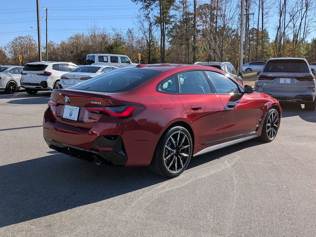 Vegas Red Metallic 2026 BMW 4 Series 430i Gran Coupe RWD 8-Speed Automatic Sport 2.0L 4-Cylinder DOHC 16V Turbocharged 10 Speakers, 4-Wheel Disc Brakes, ABS brakes, Active Cruise Control, Active Park Distance Control with Side Protection, Aerodynamic Kit, Air Conditioning, Alloy wheels, AM/FM radio: SiriusXM with 360L, Apple CarPlay and Android Auto Compatibility, Audio memory, Auto High-beam Headlights, Auto-dimming door mirrors, Auto-dimming Rear-View mirror, Automatic temperature control, Black Mirror Caps, BMW Assist ECall, BMW Curved Display with HUD, BMW TeleServices, Brake assist, Bumpers: body-color, Compass, Connected Package Pro Limited Term, ConnectedDrive Services, Delay-off headlights, Drive Recorder, Driver door bin, Driver vanity mirror, Driving Assistance Package, Dual front impact airbags, Dual front side impact airbags, Electronic Stability Control, Emergency communication system: BMW Assist eCall, Extended Shadowline Trim, Exterior Parking Camera Rear, Four wheel independent suspension, Front anti-roll bar, Front Bucket Seats, Front Center Armrest, Front dual zone A/C, Front reading lights, Fully automatic headlights, Garage door transmitter, Genuine wood console insert, Genuine wood dashboard insert, Harman/Kardon Surround Sound System, Heated door mirrors, Heated Front Seats, Heated front seats, Heated Steering Wheel, Hi-Fi Sound System, HVAC memory, Illuminated entry, Increased Top Speed Limiter, Knee airbag, Leather steering wheel, Low tire pressure warning, Lumbar Support, M Sport Package, M Sport Suspension, M Steering Wheel, Memory seat, Navigation, Navigation System, Occupant sensing airbag, Outside temperature display, Overhead airbag, Overhead console, Panic alarm, Parking Assistance Package, Parking Assistant Plus, Parking View with 3D View (SurroundView), Passenger door bin, Passenger vanity mirror, Perforated Sensatec Upholstery, Personal ESIM 5G, Power door mirrors, Power driver seat, Power Front Seats, Power Liftgate, Power moonroof, Power passenger seat, Power steering, Power windows, Premium Package, Radio data system, Radio: AM/FM Audio System, Rain sensing wipers, Rear anti-roll bar, Rear reading lights, Rear seat center armrest, Rear Spoiler, Rear window defroster, Remote keyless entry, Seal and Drive Tire Kit, Security system, Shadowline Exterior Trim, SiriusXM with 360L and 1 Year Trial Subscription, Speed control, Speed-sensing steering, Speed-Sensitive Wipers, Split folding rear seat, Sport Seats, Sport steering wheel, Steering wheel mounted audio controls, Tachometer, Telescoping steering wheel, Tilt steering wheel, Traction control, Trip computer, Turn signal indicator mirrors, Variable Sport Steering, Variably intermittent wipers, Wheels: 18" x 8.5" Dual-Spoke Bicolor, Wheels: 19" x 8.5" Front and 19" x 9.0" Rear M Y-Spoke, Wheels: 19" x 8.5" Front and 19" x 9.0" Rear Y-Spoke, Widescreen Display, Wireless Device Charging, Without Lines Designation Outside.