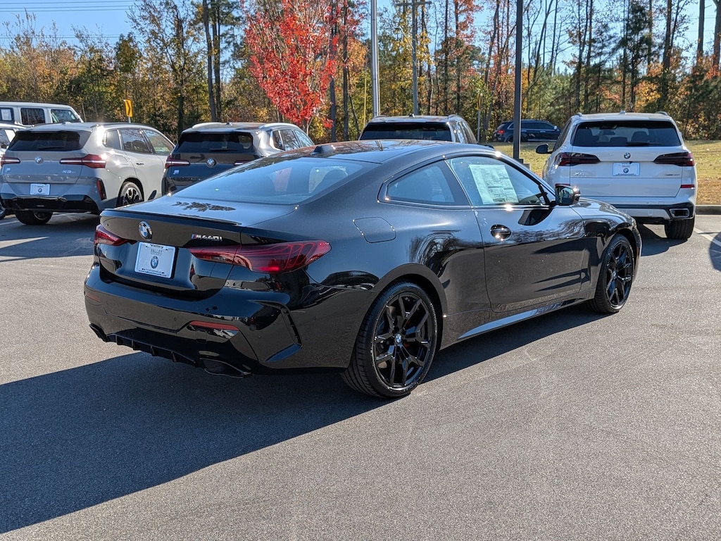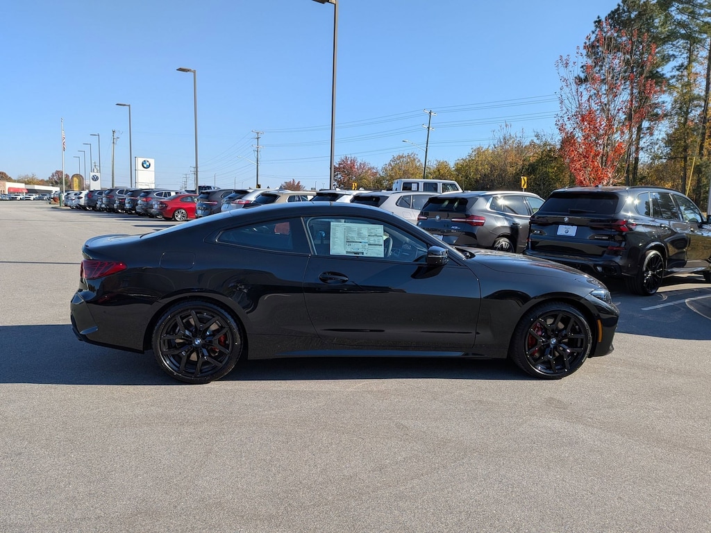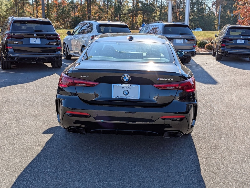 Black Sapphire Metallic 2026 BMW 4 Series M440i xDrive AWD 8-Speed Automatic Sport 3.0L I6 10 Speakers, 4-Wheel Disc Brakes, 48V Mild Hybrid System, ABS brakes, Air Conditioning, Alloy wheels, AM/FM Radio, AM/FM radio: SiriusXM with 360L, Apple CarPlay & Android Auto Compatibility, Audio memory, Auto High-beam Headlights, Auto-dimming door mirrors, Auto-dimming Rear-View mirror, Automatic temperature control, BMW Assist eCall, BMW TeleServices, Brake assist, Bumpers: body-color, Compass, Connected Package Pro Limited Term, ConnectedDrive Services, Delay-off headlights, Drive Recorder, Driver door bin, Driver vanity mirror, Dual front impact airbags, Dual front side impact airbags, Electronic Stability Control, Emergency communication system: BMW Assist eCall, Exterior Parking Camera Rear, Four wheel independent suspension, Front anti-roll bar, Front Bucket Seats, Front Center Armrest, Front dual zone A/C, Front reading lights, Front Ventilated Seats, Fully automatic headlights, Garage door transmitter, harman/kardon Surround Sound System, Heated door mirrors, Heated Front Seats, Heated front seats, Heated steering wheel, Hi-Fi Sound System, HVAC memory, Illuminated entry, Knee airbag, Leather steering wheel, Live Cockpit Pro w/Navigation, Low tire pressure warning, Lumbar Support, M Fine Brushed Aluminum Interior Trim, M Shadowline Lights, M Sport Brakes w/Red Calipers, M Sport Package Pro, Memory seat, Navigation, Navigation System, Occupant sensing airbag, Outside temperature display, Overhead airbag, Overhead console, Panic alarm, Parking Assistance Package, Parking Assistant Plus, Parking View w/3D View (Surround View), Passenger door bin, Passenger vanity mirror, Perforated SensaTec Upholstery, Personal eSIM 5G, Power door mirrors, Power driver seat, Power Front Seats, Power moonroof, Power passenger seat, Power steering, Power windows, Premium Package, Radio data system, Rain sensing wipers, Rear anti-roll bar, Rear reading lights, Rear seat center armrest, Rear window defroster, Remote keyless entry, Security system, Shadowline Package, SiriusXM w/360L & 1 Year Trial Subscription, Speed control, Speed-sensing steering, Speed-Sensitive Wipers, Split folding rear seat, Spoiler, Sport Seats, Sport steering wheel, Steering wheel mounted audio controls, Tachometer, Telescoping steering wheel, Tilt steering wheel, Traction control, Trip computer, Turn signal indicator mirrors, Variably intermittent wipers, Wheels: 19" x 8" Fr & 19" x 8.5" Rr M Dual-Spk, Wheels: 19" x 8" M Dual-Spoke Bicolor, Widescreen Display, Wireless Device Charging.