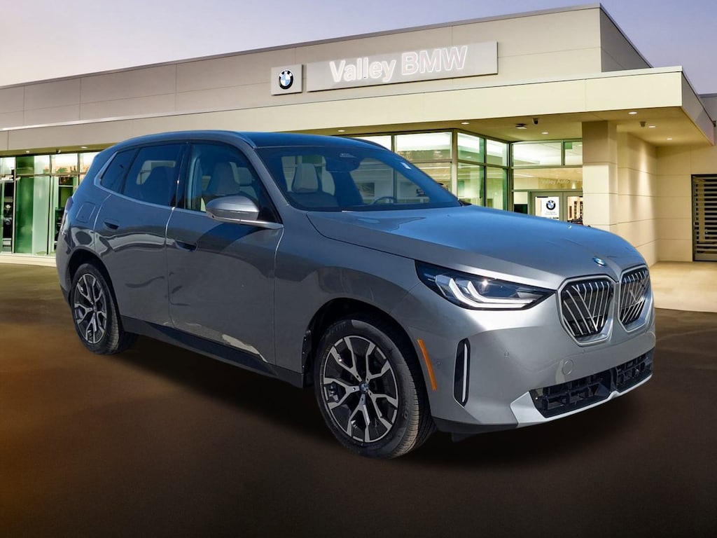 Skyscraper Gray Metallic 2026 BMW X3 30 xDrive AWD 8-Speed Automatic I4 8-Speed Automatic, 12 Speakers, 4-Wheel Disc Brakes, ABS brakes, Air Conditioning, Alloy wheels, AM/FM Radio, AM/FM radio: SiriusXM, Apple CarPlay & Android Auto Compatibility, Auto High-beam Headlights, Auto-dimming door mirrors, Auto-dimming Rear-View mirror, Automatic temperature control, BMW Assist eCall, BMW Curved Display w/HUD, BMW Iconic Glow Kidney Grille, BMW TeleServices, Brake assist, Bumpers: body-color, Delay-off headlights, Distance Control (ACC) w/Steering Assistant, Driver door bin, Driver vanity mirror, Driving Assistance Plus, Dual front impact airbags, Dual front side impact airbags, Electronic Stability Control, Emergency communication system: BMW Assist eCall, Exterior Parking Camera Rear, Four wheel independent suspension, Front anti-roll bar, Front Bucket Seats, Front Center Armrest, Front reading lights, Front Ventilated Seats, Fully automatic headlights, Garage door transmitter, Genuine wood console insert, Heated door mirrors, Heated Front Seats, Heated front seats, Heated Steering Wheel, Hi-Fi Sound System, Illuminated entry, Interior Camera, Knee airbag, Low tire pressure warning, Lumbar Support, Memory seat, Navigation, Navigation system: BMW Maps Navigation, Occupant sensing airbag, Outside temperature display, Overhead airbag, Overhead console, Panic alarm, Panorama Moonroof, Parking Assistant Plus, Parking View w/3D View (Surround View), Passenger door bin, Passenger vanity mirror, Personal eSIM 5G, Power door mirrors, Power driver seat, Power Front Seats, Power Liftgate, Power moonroof: Panoramic, Power passenger seat, Power steering, Power windows, Premium Content 1, Premium Package, Radio data system, Rain sensing wipers, Rear anti-roll bar, Rear reading lights, Rear seat center armrest, Rear window defroster, Rear window wiper, Remote Engine Start, Remote keyless entry, Security system, SiriusXM w/360L & 1 Year Trial Subscription, Speed control, Speed-Sensitive Wipers, Split folding rear seat, Spoiler, Sport Seats, Sport steering wheel, Steering wheel mounted audio controls, Tachometer, Telescoping steering wheel, Tilt steering wheel, Traction control, Travel & Comfort System, Trip computer, Turn signal indicator mirrors, Variably intermittent wipers, Veganza Perforated & Quilted Upholstery, Wheels: 19" x 8.5" Aero Midnight Grey Bicolor, Wireless Device Charging, 8-Speed Automatic.