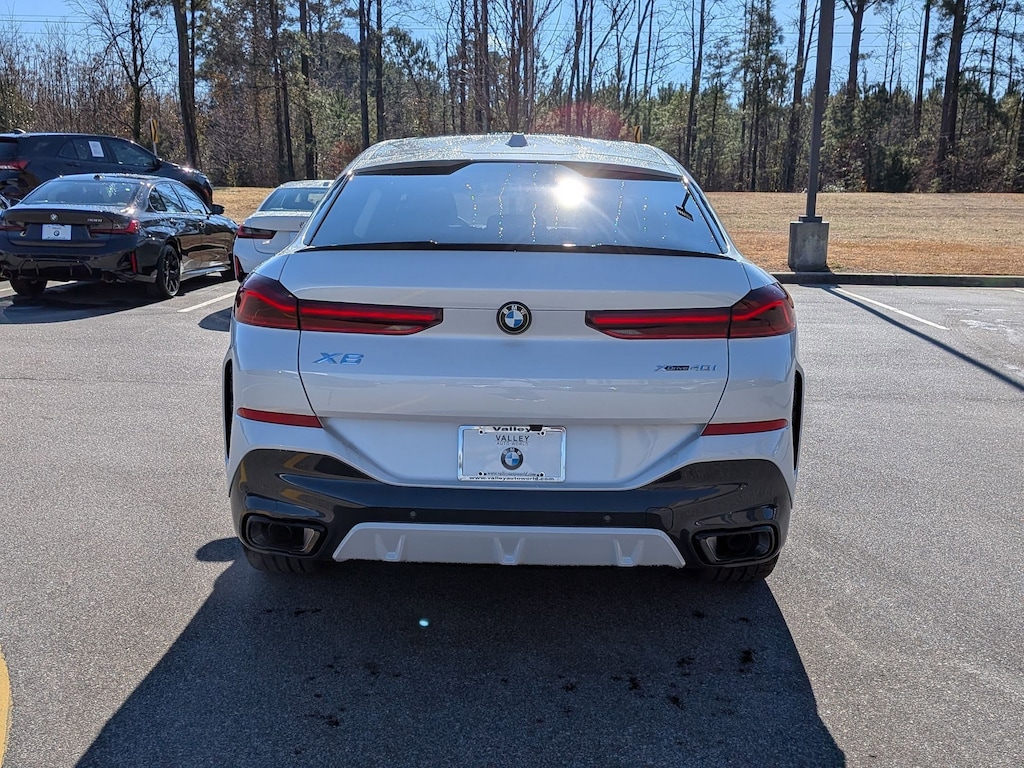 Mineral White Metallic 2026 BMW X6 xDrive40i AWD 8-Speed Automatic Sport 3.0L DOHC 24V Cognac Leather, 10 Speakers, 4-Wheel Disc Brakes, 4-Zone Automatic Climate Control, ABS brakes, Active Park Distance Control, Adaptive suspension, Air Conditioning, Alloy wheels, AM/FM radio: SiriusXM with 360L, AM/FM Stereo, Apple CarPlay Compatibility, Auto High-beam Headlights, Auto tilt-away steering wheel, Auto-dimming door mirrors, Auto-dimming Rear-View mirror, Automatic Park Assistant, Automatic temperature control, Backup Assistant, BMW Assist ECall, BMW TeleServices, Brake assist, Bumpers: body-color, Climate Comfort Package, Compass, Connected Package Pro Limited Term, ConnectedDrive Services, Delay-off headlights, Driver door bin, Driver vanity mirror, Dual front impact airbags, Dual front side impact airbags, Electronic Stability Control, Emergency communication system: BMW Assist eCall, Extended Shadowline Trim, Exterior Parking Camera Rear, Four wheel independent suspension, Front and Rear Heated Seats, Front anti-roll bar, Front Bucket Seats, Front Center Armrest, Front dual zone A/C, Front Massaging Seats, Front reading lights, Front Ventilated Seats, Fully automatic headlights, Garage door transmitter, Genuine wood console insert, Genuine wood door panel insert, Harman/Kardon Surround Sound System, Head restraints memory, Heated door mirrors, Heated Front Seats, Heated front seats, Heated Front Seats, Armrests and Steering Wheel, Hi-Fi Sound System, Illuminated entry, Illuminated Kidney Grille, Increased Top Speed Limiter, Leather steering wheel, Live Cockpit Pro, Low tire pressure warning, Lumbar Support, M Shadowline Lights, M Sport Brakes with Red Calipers, M Sport Exhaust System, M Sport Package Pro, M Sport Professional Package, Memory seat, Multi-Contour Seats, Navigation, Navigation System, Occupant sensing airbag, Outside temperature display, Overhead airbag, Overhead console, Panic alarm, Parking Assistance Package, Parking Assistant Professional, Parking View with 3D View (Surround View), Passenger door bin, Passenger vanity mirror, Personal ESIM 5G, Power adjustable front head restraints, Power door mirrors, Power driver seat, Power Front Seats, Power Liftgate, Power moonroof, Power passenger seat, Power steering, Power windows, Premium Package, Radio data system, Rain sensing wipers, Rear anti-roll bar, Rear reading lights, Rear seat center armrest, Rear window defroster, Rear-View Camera, Remote Engine Start, Remote keyless entry, Security system, Sensafin Upholstery, SiriusXM with 360L and 1 Year Trial Subscription, Speed control, Speed-sensing steering, Speed-Sensitive Wipers, Split folding rear seat, Spoiler, Sport Seats, Sport steering wheel, Steering wheel memory, Steering wheel mounted audio controls, Tachometer, Telescoping steering wheel, Tilt steering wheel, Traction control, Trailer Assistant, Trip computer, Turn signal indicator mirrors, Variably intermittent wipers, Wheels: 20" x 9" M Star-Spoke Bicolor (style 740M), Wheels: 22" M Dual-Spoke Bicolor (style 742M), Wireless Device Charging, Cognac Leather.