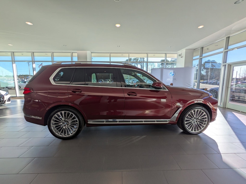 Aventurin Red Metallic 2026 BMW X7 xDrive40i AWD 8-Speed Automatic Sport 3.0L I6 DOHC 24V 10 Speakers, 2nd Row Captain's Chairs, 3rd row seats: split-bench, 4-Wheel Disc Brakes, ABS brakes, Adaptive suspension, Air Conditioning, Alloy wheels, Aluminum Running Boards, AM/FM radio: SiriusXM with 360L, AM/FM Stereo, Anthracite Alcantara Headliner, Apple CarPlay and Android Auto Compatibility, Apple CarPlay Compatibility, Auto High-beam Headlights, Auto tilt-away steering wheel, Auto-dimming door mirrors, Auto-dimming Rear-View mirror, Auto-leveling suspension, Automatic temperature control, BMW Assist ECall, BMW TeleServices, Brake assist, Bumpers: body-color, Compass, Connected Package Pro, ConnectedDrive Services, Delay-off headlights, Driver door bin, Driver vanity mirror, Dual front impact airbags, Dual front side impact airbags, Electric Rear Side Window Shades, Electronic Stability Control, Emergency communication system: BMW Assist eCall, Exterior Parking Camera Rear, Four wheel independent suspension, Front anti-roll bar, Front Bucket Seats, Front Center Armrest, Front dual zone A/C, Front reading lights, Fully automatic headlights, Garage door transmitter, Genuine wood console insert, Genuine wood dashboard insert, Genuine wood door panel insert, Harman/Kardon Surround Sound System, Head restraints memory, Heads-Up Display, Heated door mirrors, Heated front seats, Heated Multi-Contour Seats, Heated steering wheel, Hi-Fi Sound System, Illuminated entry, Increased Top Speed Limiter, Knee airbag, Leather steering wheel, Live Cockpit Pro, Low tire pressure warning, Memory seat, Navigation system: BMW Maps Navigation, Occupant sensing airbag, Outside temperature display, Overhead airbag, Panic alarm, Passenger door bin, Passenger vanity mirror, Personal ESIM 5G, Power adjustable front head restraints, Power door mirrors, Power driver seat, Power Front Seats, Power moonroof, Power passenger seat, Power steering, Power windows, Premium Package, Radio data system, Rain sensing wipers, Rear air conditioning, Rear anti-roll bar, Rear dual zone A/C, Rear reading lights, Rear seat center armrest, Rear window defroster, Rear window wiper, Reclining 3rd row seat, Remote keyless entry, Security system, Sensafin Upholstery with Decor Stitching, SiriusXM with 360L and 1 Year Trial Subscription, Soft-Close Automatic Doors, Speed control, Speed-sensing steering, Speed-Sensitive Wipers, Split folding rear seat, Spoiler, Sport steering wheel, Steering wheel memory, Steering wheel mounted audio controls, Tachometer, Telescoping steering wheel, Tilt steering wheel, Traction control, Trailer Hitch, Trip computer, Turn signal indicator mirrors, Variably intermittent wipers, Wheels: 22" x 9.5" Front and 22" x 10.5" Rear Multi-Spoke, Wireless Charging Device.