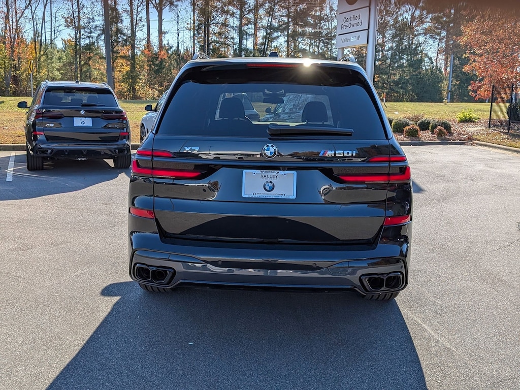 Black Sapphire Metallic 2026 BMW X7 M60i AWD 8-Speed Automatic Sport 4.4L V8 DOHC 32V 16 Speakers, 3rd row seats: split-bench, 4-Wheel Disc Brakes, 5-Zone Automatic Climate Control, ABS brakes, Adaptive suspension, Air Conditioning, Alloy wheels, AM/FM radio: SiriusXM with 360L, AM/FM Stereo, Apple CarPlay and Android Auto Compatibility, Apple CarPlay Compatibility, Auto High-beam Headlights, Auto tilt-away steering wheel, Auto-dimming door mirrors, Auto-dimming Rear-View mirror, Auto-leveling suspension, Automatic temperature control, BMW Assist ECall, BMW Individual Merino Leather Upholstery, BMW TeleServices, Bowers & Wilkins Diamond Surround Sound System, Brake assist, Bumpers: body-color, Climate Comfort Package, Compass, Connected Package Pro, ConnectedDrive Services, Delay-off headlights, Distance Control (ACC) with Steering Assistant, Driver door bin, Driver vanity mirror, Driving Assistance Professional Package, Driving Assistant Professional, Dual front impact airbags, Dual front side impact airbags, Electronic Stability Control, Emergency communication system: BMW Assist eCall, Executive Package, Extended Shadowline Trim, Exterior Parking Camera Rear, Four wheel independent suspension, Front and Rear Heated Seats, Front anti-roll bar, Front Bucket Seats, Front Center Armrest, Front dual zone A/C, Front Massaging Seats, Front reading lights, Front Ventilated Seats, Fully automatic headlights, Garage door transmitter, Genuine wood console insert, Genuine wood dashboard insert, Genuine wood door panel insert, Glass Controls, Harman/Kardon Surround Sound System, harman/kardon® Speakers, Head restraints memory, Heads-Up Display, Heated and Cooled Cup Holders, Heated door mirrors, Heated front seats, Heated Multi-Contour Seats, Heated steering wheel, Illuminated entry, Knee airbag, Lane Change Assistant, Leather steering wheel, Limited Term Highway Assistant, Live Cockpit Pro, Low tire pressure warning, M Sport Brakes with Black Calipers, M Sport Package Pro, M Sport Professional Package, Memory seat, Navigation system: BMW Maps Navigation, Occupant sensing airbag, Outside temperature display, Overhead airbag, Panic alarm, Panoramic Sky Lounge LED Roof, Partial Automated Driving, Passenger door bin, Passenger vanity mirror, Personal ESIM 5G, Power adjustable front head restraints, Power door mirrors, Power driver seat, Power Front Seats, Power moonroof, Power passenger seat, Power steering, Power windows, Radio data system, Rain sensing wipers, Rear air conditioning, Rear anti-roll bar, Rear dual zone A/C, Rear reading lights, Rear seat center armrest, Rear window defroster, Rear window wiper, Reclining 3rd row seat, Remote keyless entry, Security system, SiriusXM with 360L and 1 Year Trial Subscription, Speed control, Speed-sensing steering, Speed-Sensitive Wipers, Split folding rear seat, Spoiler, Sport steering wheel, Steering wheel memory, Steering wheel mounted audio controls, Tachometer, Telescoping steering wheel, Tilt steering wheel, Traction control, Trip computer, Turn signal indicator mirrors, Variably intermittent wipers, Wheels: 22" x 9.5" Front and 22" x 10.5" Rear Dual-Spoke, Wireless Charging Device.