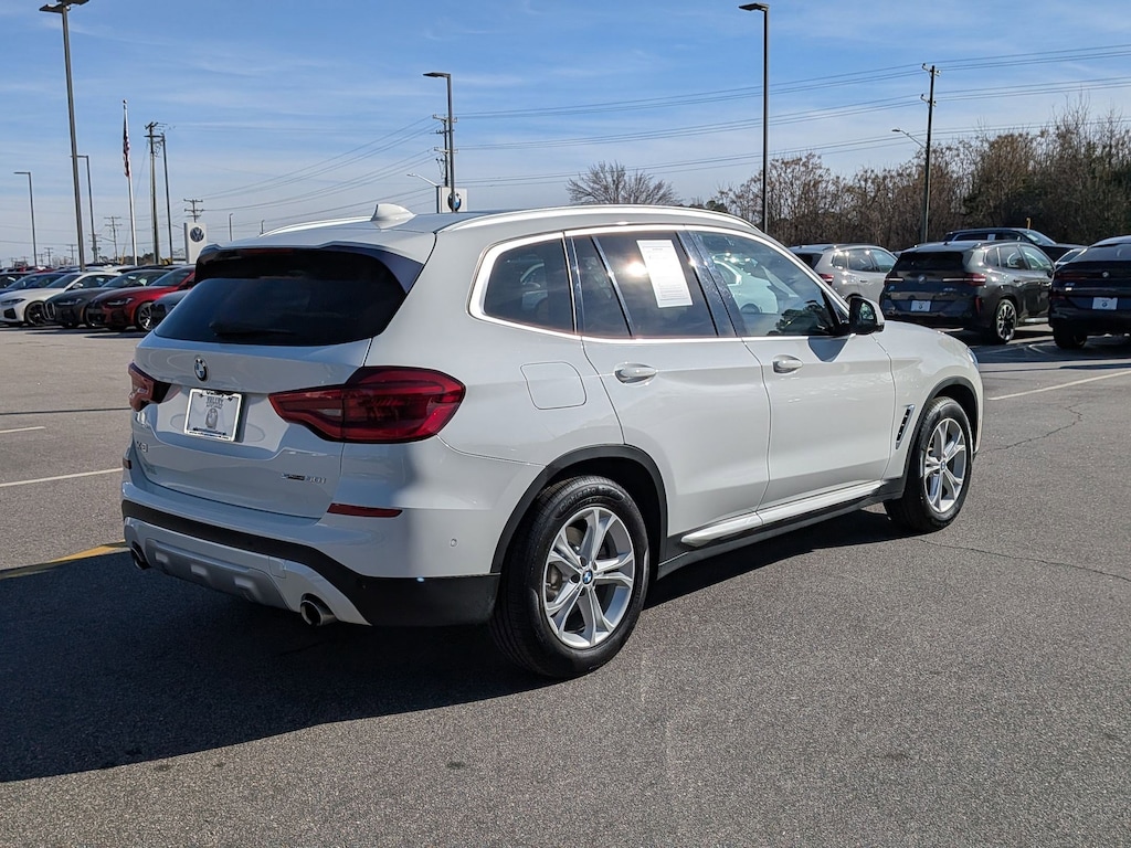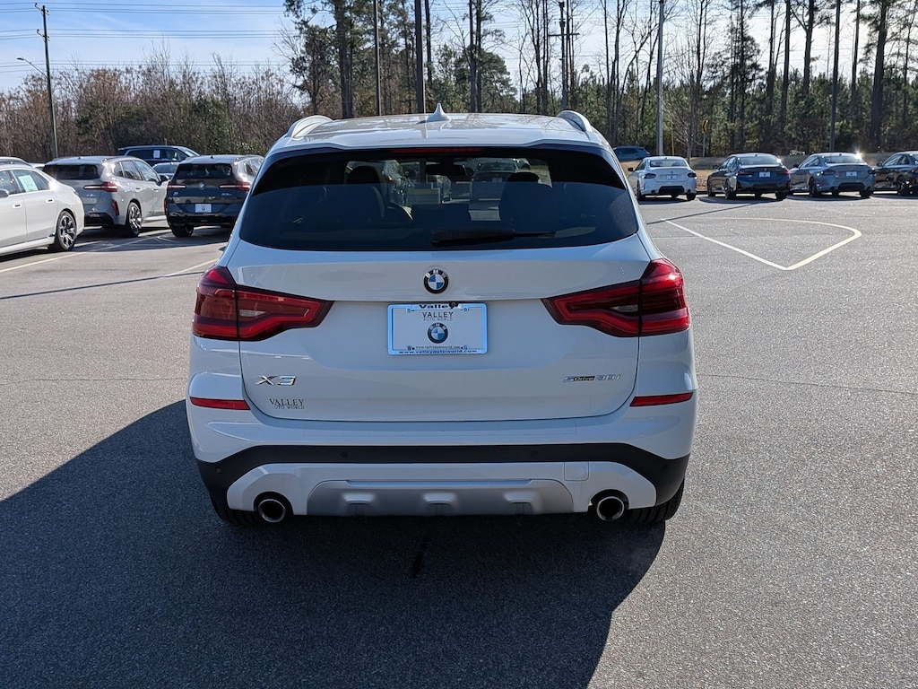 Alpine White 2021 BMW X3 sDrive30i RWD 8-Speed Automatic Sport 2.0L I4 TwinPower Turbo 8-Speed Automatic Sport, 12 Speakers, 3.385 Axle Ratio, 4-Wheel Disc Brakes, ABS brakes, Active Park Distance Control, Air Conditioning, Alloy wheels, Aluminum Interior Trim, AM/FM radio: SiriusXM, Ambient Lighting, Apple CarPlay Compatibility, Auto-dimming door mirrors, Auto-dimming Rear-View mirror, Automatic temperature control, BMW Assist eCall, BMW TeleServices, Brake assist, Bumpers: body-color, Comfort Access Keyless Entry, Connected Package Plus, ConnectedDrive Services, Convenience Package, Delay-off headlights, Driver door bin, Driver vanity mirror, Dual front impact airbags, Dual front side impact airbags, Electronic Stability Control, Emergency communication system: BMW Assist eCall, Exterior Parking Camera Rear, Four wheel independent suspension, Front anti-roll bar, Front Bucket Seats, Front Center Armrest, Front dual zone A/C, Front fog lights, Front reading lights, Fully automatic headlights, Garage door transmitter, Genuine wood dashboard insert, Genuine wood door panel insert, Heated door mirrors, Heated Front Seats, Hi-Fi Sound System, Illuminated entry, Knee airbag, Low tire pressure warning, Lumbar Support, Memory seat, Navigation, Navigation System, Occupant sensing airbag, Outside temperature display, Overhead airbag, Panic alarm, Panoramic Moonroof, Parking Assistance Package, Parking Assistant Plus, Passenger door bin, Passenger vanity mirror, Power door mirrors, Power driver seat, Power Front Seats, Power Liftgate, Power passenger seat, Power steering, Power windows, Radio Control US, Radio data system, Radio: AM/FM Stereo w/HD, Rain sensing wipers, Rear air conditioning, Rear anti-roll bar, Rear reading lights, Rear seat center armrest, Rear window defroster, Rear window wiper, Rear-View Camera, Remote keyless entry, Roof rack: rails only, Security system, SensaTec Upholstery, SiriusXM Satellite Radio, Speed control, Speed-sensing steering, Speed-Sensitive Wipers, Split folding rear seat, Spoiler, Sport Bucket Seats, Sport steering wheel, Steering wheel mounted audio controls, Surround View w/3D View, Tachometer, Telescoping steering wheel, Tilt steering wheel, Traction control, Trip computer, Turn signal indicator mirrors, Variably intermittent wipers, Wheels: 18" x 7.0" Y-Spoke (Style 688), WiFi Hotspot, 8-Speed Automatic Sport.