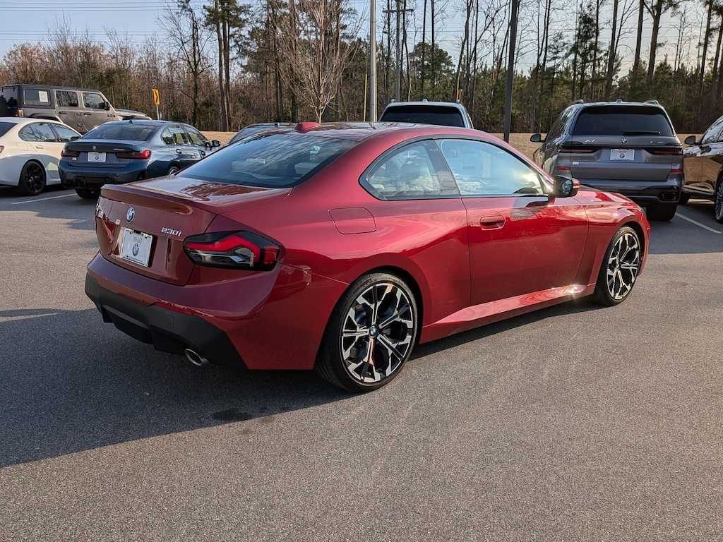 Clean CARFAX. Vegas Red Metallic 2025 BMW 2 Series 230i RWD 8-Speed Automatic Sport 2.0L I4 16V TwinPower Turbo 10 Speakers, 4-Wheel Disc Brakes, ABS brakes, Adaptive Full LED Lights, Aerodynamic Kit, Air Conditioning, Alloy wheels, AM/FM radio: SiriusXM, Ambient Lighting, Apple CarPlay & Android Auto Compatibility, Auto-dimming door mirrors, Auto-dimming Rear-View mirror, Automatic High Beams, Automatic temperature control, BMW Assist eCall, BMW TeleServices, Brake assist, Bumpers: body-color, Comfort Access Keyless Entry, Connected Package Pro, ConnectedDrive Services, Delay-off headlights, Driver door bin, Driver vanity mirror, Dual front impact airbags, Dual front side impact airbags, Electronic Stability Control, Emergency communication system: BMW Assist eCall, Exterior Parking Camera Rear, Four wheel independent suspension, Front anti-roll bar, Front Bucket Seats, Front Center Armrest, Front dual zone A/C, Front reading lights, Front Sport Seats, Fully automatic headlights, Heated door mirrors, Heated Front Seats, Heated front seats, Heated Steering Wheel, Hi-Fi Sound System, Illuminated entry, Knee airbag, Leather Shift Knob, Leather steering wheel, Live Cockpit Pro w/Head-Up Display, Low tire pressure warning, M Fine Brushed Aluminum Interior Trim, M Sport Package, M Sport Pkg, M Sport Suspension, M Steering Wheel, Memory seat, Moonroof, Navigation, Navigation System, Occupant sensing airbag, Outside temperature display, Overhead airbag, Panic alarm, Passenger door bin, Passenger vanity mirror, Perforated Sensatec Upholstery, Personal eSIM 5G, Power door mirrors, Power driver seat, Power Front Seats, Power passenger seat, Power steering, Power windows, Premium Package, Radio data system, Radio: AM/FM Audio System, Rain sensing wipers, Rear air conditioning, Rear anti-roll bar, Rear Spoiler, Rear window defroster, Remote Engine Start, Remote keyless entry, Security system, SiriusXM w/360L, Speed control, Speed-sensing steering, Speed-Sensitive Wipers, Split folding rear seat, Sport steering wheel, Steering wheel mounted audio controls, Tachometer, Telescoping steering wheel, Tilt steering wheel, Traction control, Trip computer, Turn signal indicator mirrors, Universal Garage-Door Opener, Variable Sport Steering, Variably intermittent wipers, Wheels: 18" x 7.5" M Double-Spoke, Wheels: 18" x 7.5" V-Spoke Bicolor Orbit Grey, Wheels: 19" x 8.0" Individual Y-Spoke Bicolor, Widescreen Display, Without Lines Designation Outside.