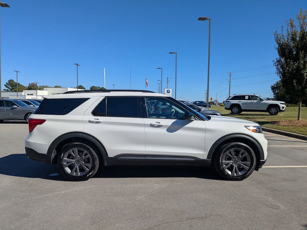 CARFAX One-Owner. Oxford White 2022 Ford Explorer XLT RWD 10-Speed Automatic 2.3L EcoBoost I-4 1st Row Heated Seats, 3.58 Non-Limited-Slip Rear Axle Ratio, 3rd row seats: bench, 4-Wheel Disc Brakes, 6 Speakers, ABS brakes, ActiveX Captain's Chairs, Air Conditioning, Alloy wheels, AM/FM radio: SiriusXM, AM/FM Stereo, Auto High-beam Headlights, Auto Start-Stop Removal, Automatic temperature control, Brake assist, Bumpers: body-color, Class IV Trailer Tow Package, Compass, Delay-off headlights, Driver door bin, Driver vanity mirror, Dual front impact airbags, Dual front side impact airbags, Electronic Stability Control, Emergency communication system: SYNC 3 911 Assist, Equipment Group 202A, Exterior Parking Camera Rear, FordPass Connect, Four wheel independent suspension, Front anti-roll bar, Front Bucket Seats, Front Center Armrest, Front dual zone A/C, Front reading lights, Fully automatic headlights, Heated door mirrors, Heated front seats, Heated Steering Wheel, Illuminated entry, Knee airbag, Leather steering wheel, LED Fog Lamps, Low tire pressure warning, Occupant sensing airbag, Outside temperature display, Overhead airbag, Overhead console, Panic alarm, Passenger door bin, Passenger vanity mirror, Power door mirrors, Power driver seat, Power Liftgate, Power passenger seat, Power steering, Power windows, Rear air conditioning, Rear anti-roll bar, Rear reading lights, Rear window defroster, Rear window wiper, Remote keyless entry, Remote Start System, Roof rack: rails only, SecuriCode Keyless Entry Keypad, Security system, Speed control, Speed-sensing steering, Speed-Sensitive Wipers, Split folding rear seat, Spoiler, Steering wheel mounted audio controls, SYNC 3 Communications & Entertainment System, SYNC 3/Apple CarPlay/Android Auto, Tachometer, Telescoping steering wheel, Tilt steering wheel, Traction control, Trip computer, Twin Panel Moonroof, Unique Cloth Captain's Chairs, Variably intermittent wipers, Wheels: 18" 5-Spoke Silver-Painted Aluminum, Wheels: 20" 10-Spoke Carbonized Gray-Painted, XLT Sport Appearance Package.