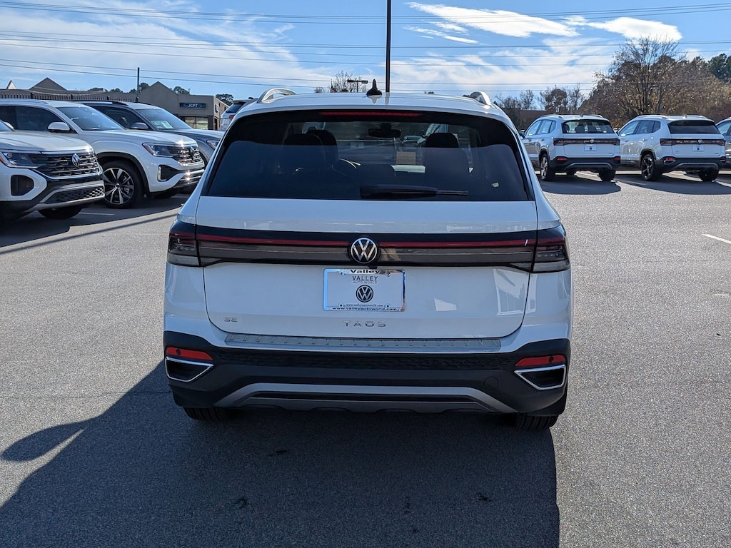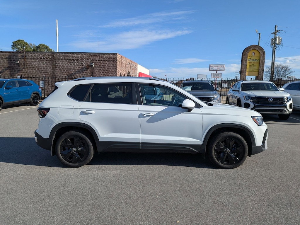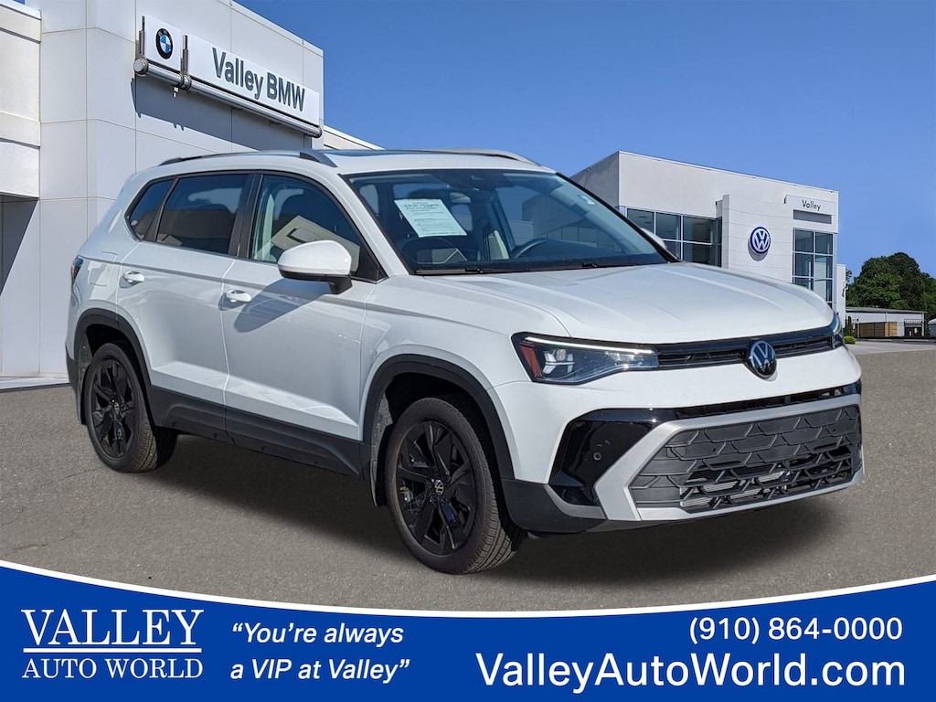 New Price! Clean CARFAX. Pure White 2025 Volkswagen Taos 1.5T SE FWD 8-Speed Automatic with Tiptronic 1.5L I4 Turbocharged DOHC 16V LEV3-SULEV30 174hp 4-Wheel Disc Brakes, 6 Speakers, ABS brakes, Active Blind Spot Monitor, Air Conditioning, Alloy wheels, AM/FM radio: SiriusXM with 360L, Auto High-beam Headlights, Automatic temperature control, Brake assist, Bumpers: body-color, Compass, Delay-off headlights, Driver door bin, Driver vanity mirror, Dual front impact airbags, Dual front side impact airbags, Electronic Stability Control, Emergency communication system: VW Car-Net Safe & Secure 5-year, Exterior Parking Camera Rear, Front anti-roll bar, Front Bucket Seats, Front Center Armrest, Front dual zone A/C, Front reading lights, Front Strut Rear Torsion Beam Suspension, Front wheel independent suspension, Fully automatic headlights, Heated door mirrors, Heated Front Bucket Seats, Heated front seats, Heated steering wheel, Illuminated entry, Leather Shift Knob, Low tire pressure warning, Occupant sensing airbag, Outside temperature display, Overhead airbag, Overhead console, Panic alarm, Passenger door bin, Passenger vanity mirror, Power door mirrors, Power driver seat, Power steering, Power windows, Radio data system, Radio: MIB3 Composition Media AM/FM/HD, Rain sensing wipers, Rear anti-roll bar, Rear seat center armrest, Rear window defroster, Rear window wiper, Remote keyless entry, Security system, Speed control, Speed-sensing steering, Split folding rear seat, Spoiler, Steering wheel mounted audio controls, Tachometer, Telescoping steering wheel, Tilt steering wheel, Traction control, Trip computer, Variably intermittent wipers, Wheels: 18" 2-Tone Machined Alloy.